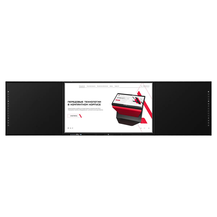 • в его состав входят: центральная сенсорная панель, дополненная двумя дополнительными досками – маркерными или меловыми, расположенными по краям;
