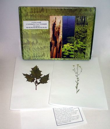 В гербарии представлены 24 вида наиболее распространенных сорных растений, произрастающих в различных географических зонах России: от Сибири до южных районов. Засушенные растения (некоторые с соцветиями и плодами) наклеиваются на гербарные листы (формат А3). К гербарию прилагается список с наименованием растений. В этикетках на гербарных листах даны краткие описания растений.