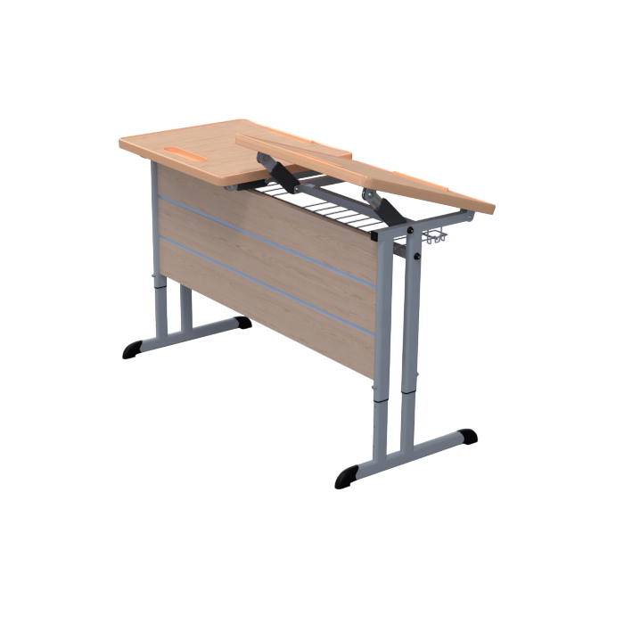 Стол ученический - это идеальный выбор для тех, кто ищет удобное рабочее пространство для учебы. Он имеет две одноместные столешницы, с возможностью регулировки наклона каждой из них. Столешницы оснащены 4-позиционным механизмом регулировки, что позволяет настроить угол наклона в соответствии с потребностями учащихся. Это удобно когда необходимо работать в разных положениях и это не будет мешать рядом сидящему ребёнку.
