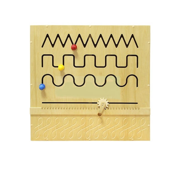 Модуль предназначен для развития запястья, путем выполнения различных движений, связанных с передвижением ручек по прорезям. Верхняя прорезь предлагает простые движения сверху вниз; в следующем ряду движения кисти вертикально-горизонтальные, далее – криволинейные и, наконец, вращательные движения запястья. Движения происходят слева направо, что дополнительно формирует направления движения, как при письме.